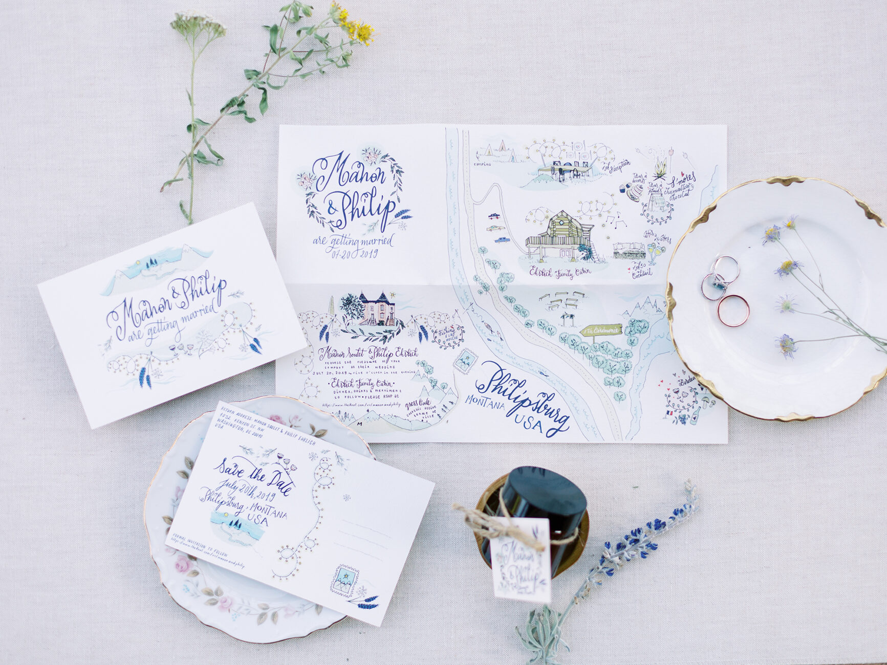 La plupart des faire-parts : Sandrine Bonnin / Le faire-part unique d’Ana & Tim : Lesley Photography / Le faire-part d’Anne & Philippe au Luxembourg : Anika Lauer / Le faire-part de Manon & Philip dans le Montana :  Stella K. Photography / Le faire-part de Cécile & Xavier : Solveig & Ronan / Le faire-part d’Elodie & Sébastien : Les Histoires d’A (Laetitia Pavoine)