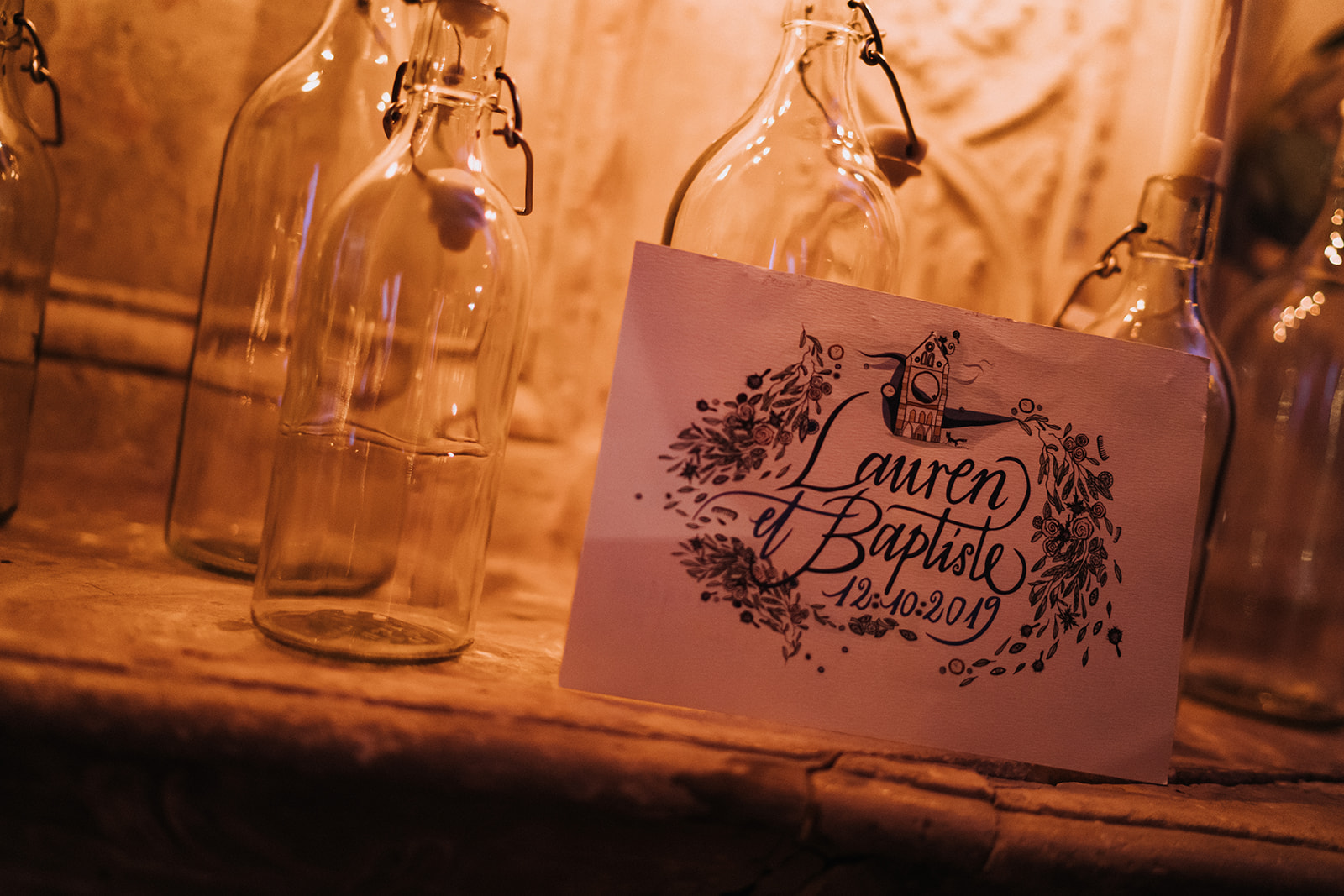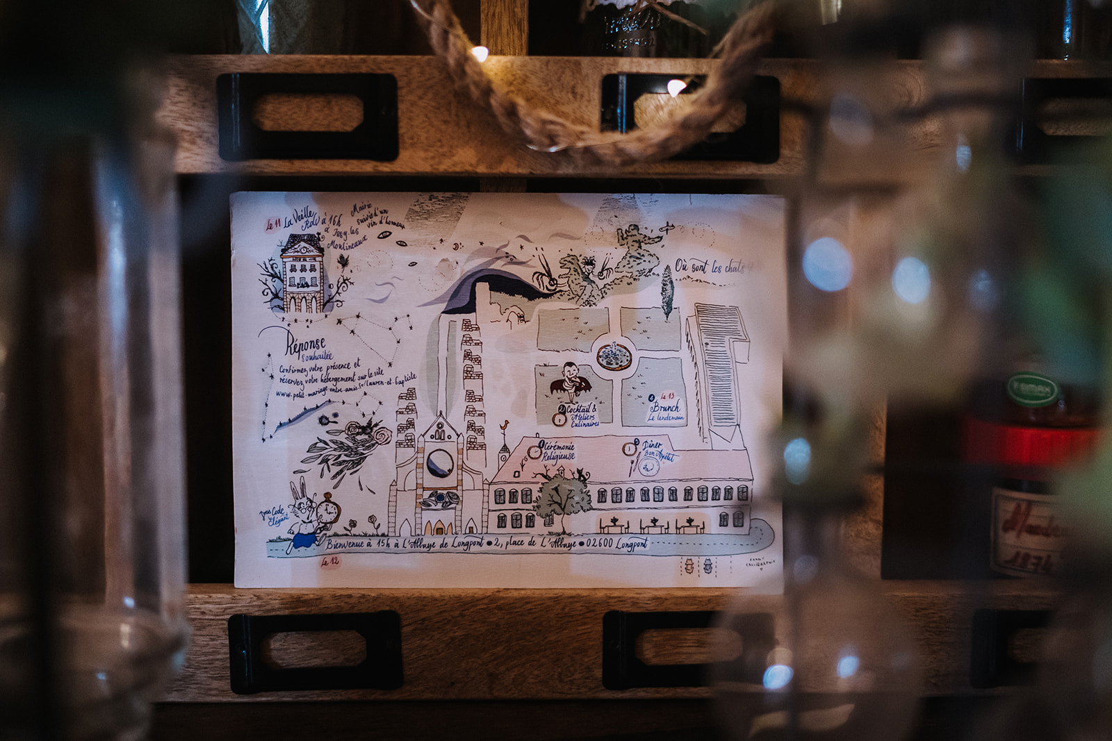 “Je voulais vous parler de cette petite merveille créée de À à Z par @fannycalligraphie une véritable artiste, capable de capter la personnalité des personnes dont elle va retranscrire l'univers en dessin...(faites défiler pour voir les photos!). Après 1 rdv où elle a appris à nous connaître et à cerner ce qu'on aimerait transmettre, Fanny a créé ce faire-part unique truffé d'indices et de clins d'œil à ce qu'on aime et à notre histoire : Des chats (qui nous représentent) qu'on retrouve sur le haut de l'abbaye au recto et cachés dans le dessin au verso. si vous avez l'œil en zoomant vous les verrez héhé, Des yeux (parce que j'ai ce porte-bonheur sur une bonne partie de mes bijoux et que j'adore ça) Des brosses (vous savez pourquoi haha) en forme de chardon bleu (fleurs de notre mariage), Des horloges car mon mari est fan de montres... Le lapin d'Alice au pays des merveilles (dessin animé qu'on aime tous les deux / rapport au temps, aux montres et à notre fâcheuse tendance à être souvent en retard lol) Un vampire qui déguste des canapés au cocktail (on a tous les 2 une passion pour les films de vampires !) Édouard aux mains d'argent en action, en train de faire ses sculptures (une de mes films préférés) Les ronces autour de la mairie et les roses en référence à La Belle et la bête, un de nos Disney préféré 💍 Ma bague de fiançailles (que mon mari avait dessinée et fait faire) à la fois au recto et au verso (saurez-vous la retrouver ?, Un avion car monsieur a démarré sa carrière chez Airbus et on a fait pas mal d'allers retours Paris-Toulouse au début de notre histoire, Nos signes du zodiaque en constellations (Poissons et Lion) Et enfin le plan parfaitement reproduit de l'abbaye de Longpont où nous nous sommes mariés... 🌟 Fanny a également fait nos étiquettes de cadeaux invités dans le même esprit. Un immense merci ma @fannycalligraphie pour ces merveilles sur-mesure que tu as créées pour nous et à notre super photographe @apartoflifephotography pour ces belles photos !”
