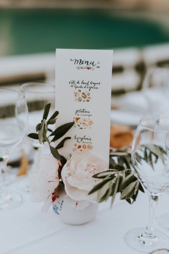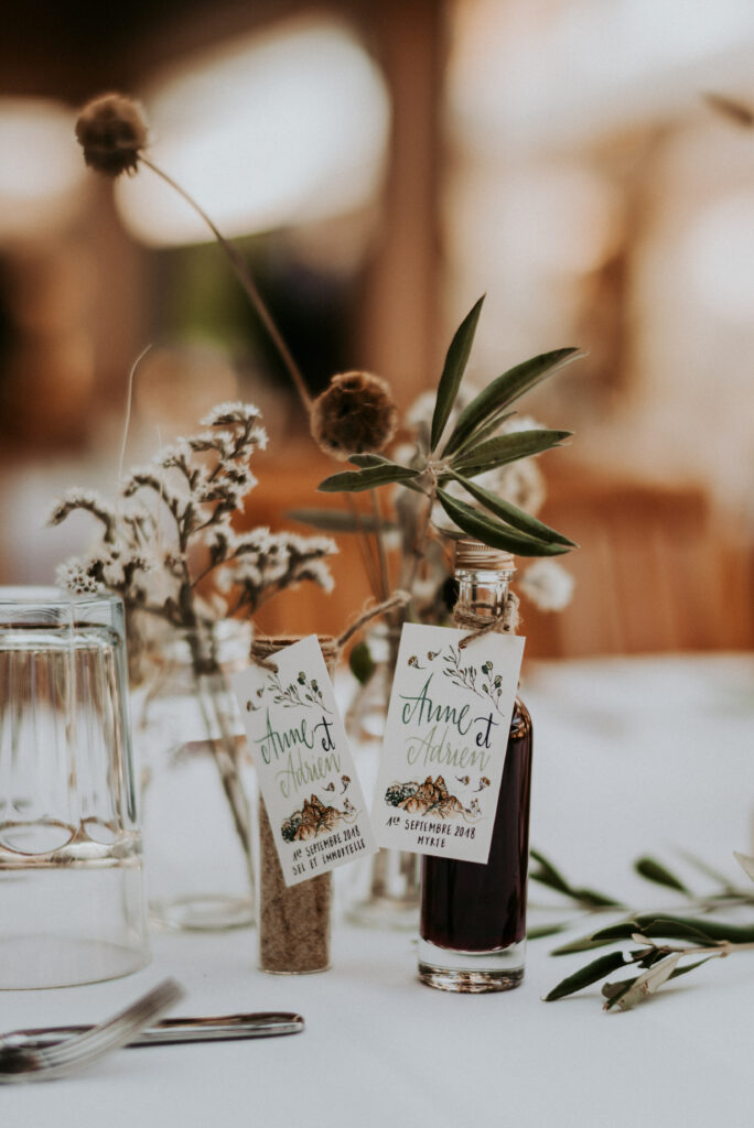 Menu, noms et plan de tables, étiquettes pour les cadeaux d'invités...