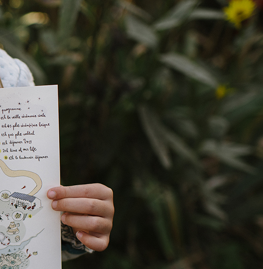 Après avoir créé votre univers dessiné, on garde une cohérence graphique sur l'ensemble de votre papeterie de mariage et familiale. On reprend la même écriture, et on décline ces illustrations !